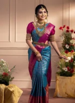 Aqua Blue Litchi Silk Zari Jacquard Saree A Classy Wear Festive Wear