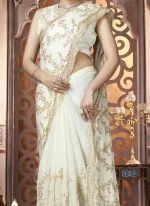 - If you are looking for a statement piece that captures both delicacy and tradition this cream organza saree delivers timeless elegance. Its refined embroidery and soft drape make it a versatile yet regal choice for important celebrations. It promises to leave an impression of grace with its airy texture and exquisite detailing that blends traditional handwork with modern charm.