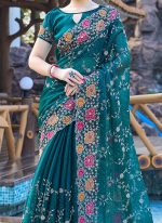 Embroidery Sequins Work Dark Green Color Georgette Saree Festive Wear