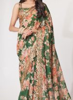 Home Saree Occasions Wedding Sarees Green Organza Printed N Sequins Work Saree Party Wear