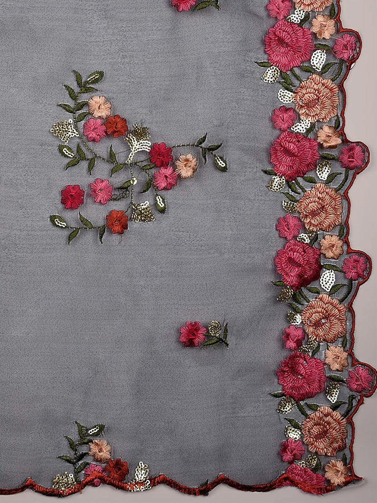 Let this season see you welcome the beauty of this organza dupatta to your ethnic fashion mix, showcasing eye some elegance and gorgeous grace! This alluring creation is adorned with beautiful multicolour floral embroidery all over. It will definitely give your feminine charm a hint of subdued elegance.