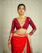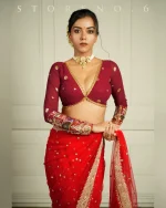 - Multi-Colour Sequins and Thread Works on Deep Maroon Georgette Blouse. Full Sleeves With Diamond-Shaped Back