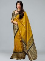 Stunning Mustard Banarasi Silk Saree Festive Wear